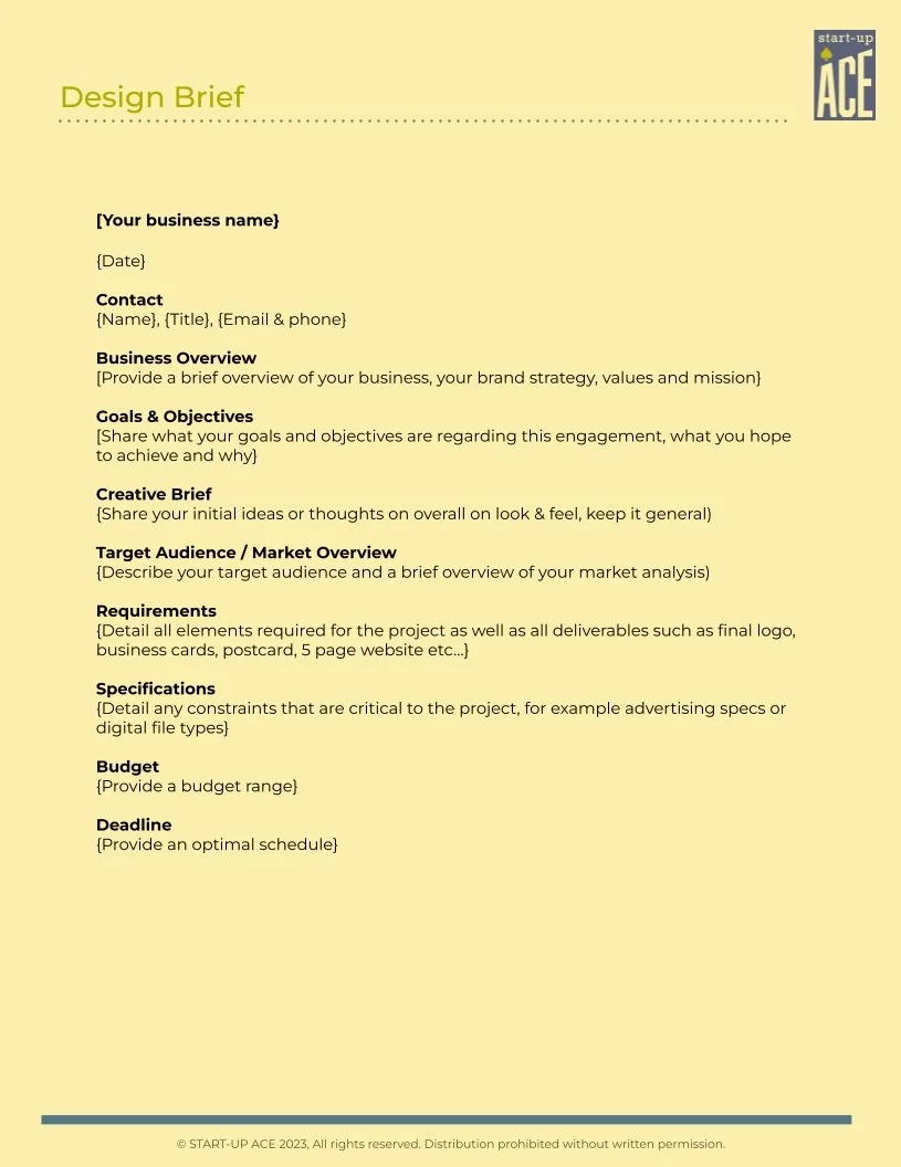 1. Write a creative brief. Include your goals, budget, timeline, and deliverables. This is especially important when getting quotes from multiple people – you want an apples to apples quote.